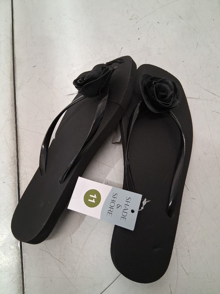 women's shade & shore Rosette Flower Flip Flop Sandals - 11 - black