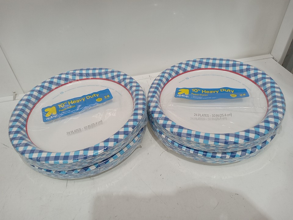 4 (24pk) UP& UP heavy duty paper plates - 10" -blue checkered