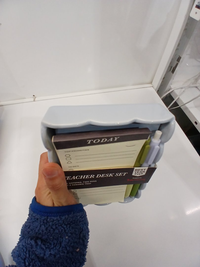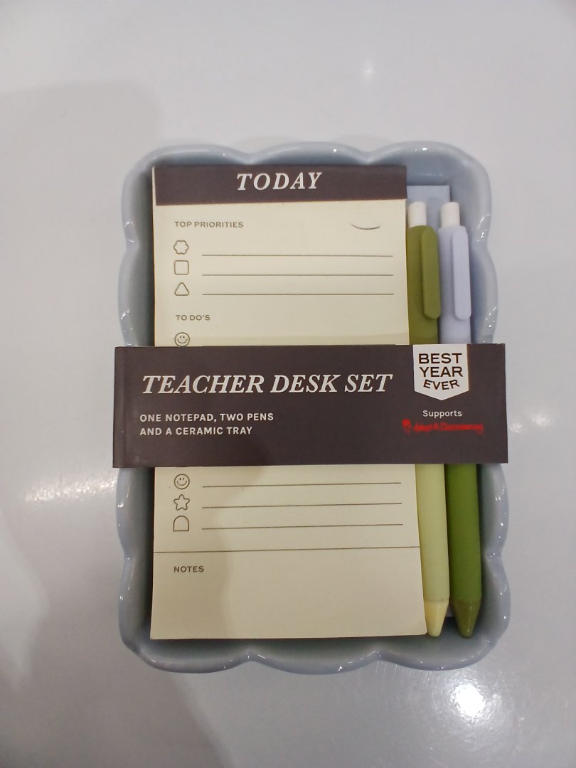 4pc best year ever teacher desk set - one notepad, two pens and a ceramic tray