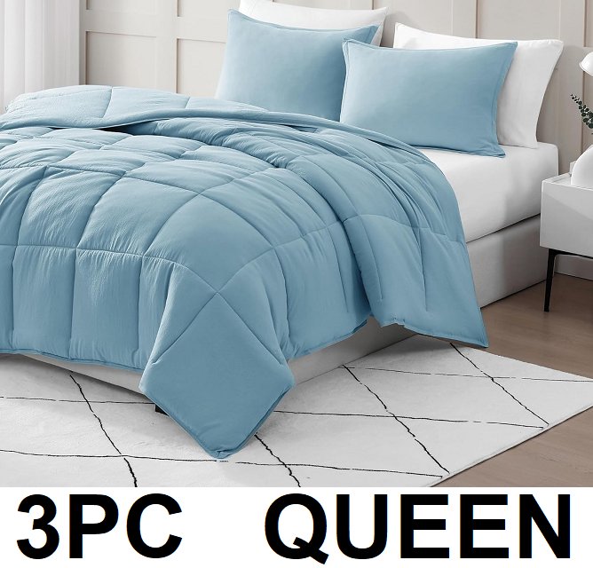 3PC Casa Platino Bedding Set WITH PILLOW SHAMS - QUEEN - BLUE