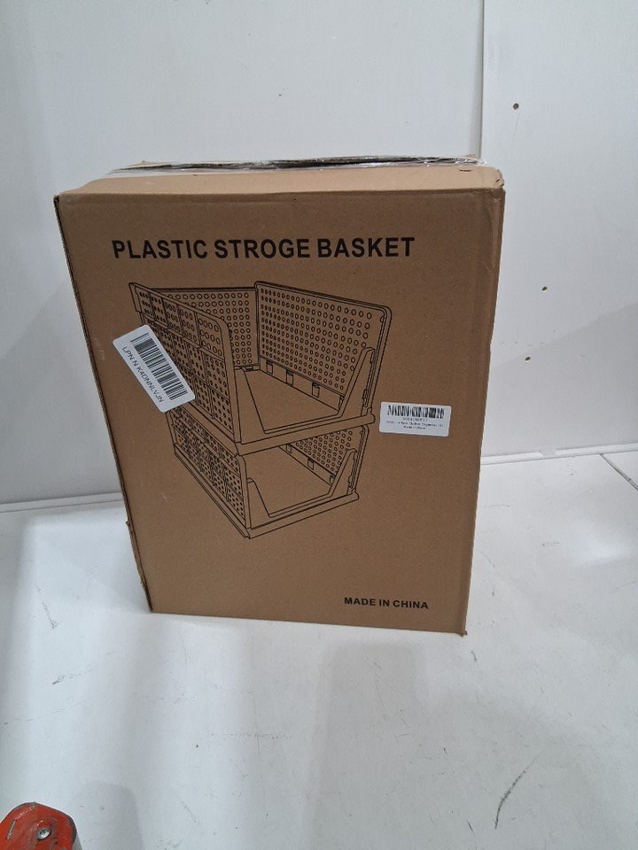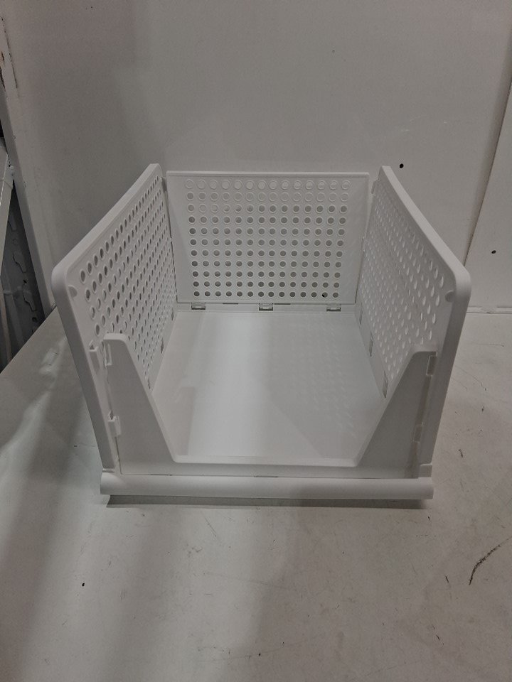 4pk UNBRANDED Stackable/foldable Plastic Storage Basket/Closet Organizers - white