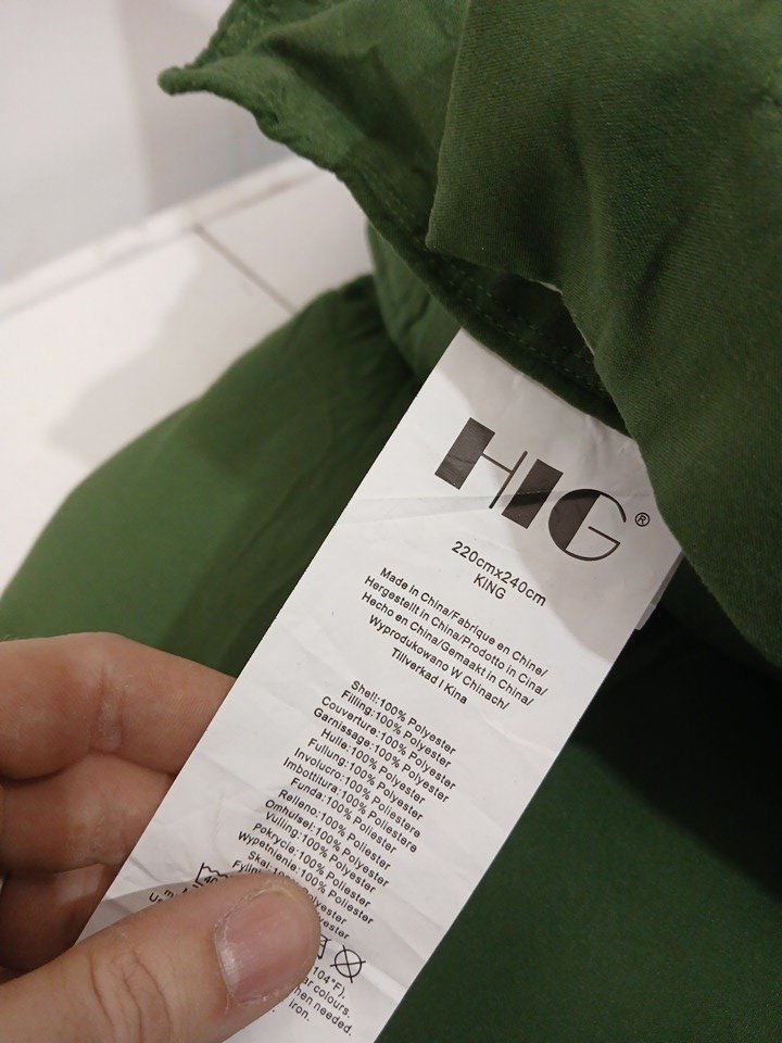 3PC HIG All Season Reversible Comforter with Two Shams - 86.6" X 94.4" KING SIZE - OLIVE GREEN