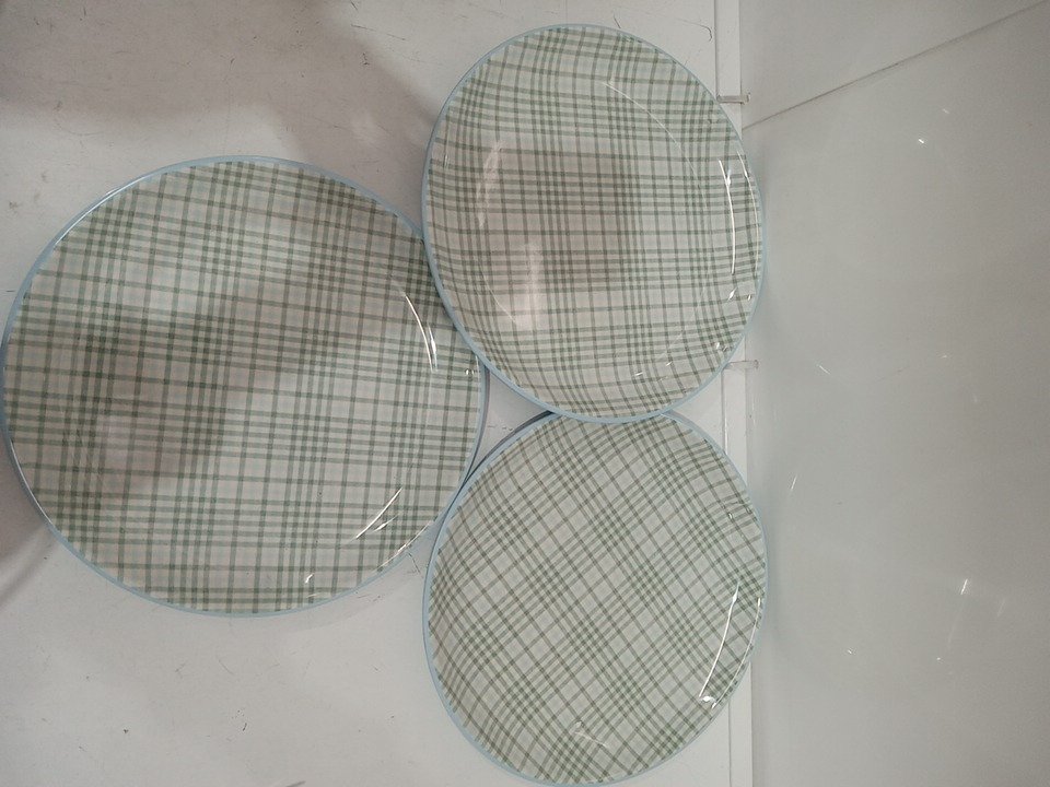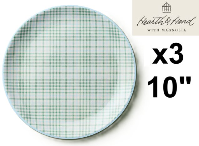 3 Hearth & Hand with Magnolia Layered Plaid Melamine Dining Plates - 10" - green