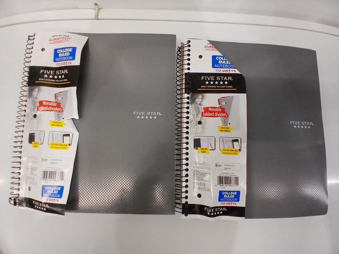 2 five stars 3 Subject Spiral College Ruled Notebook - 8.5x11" - grey