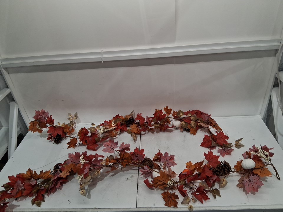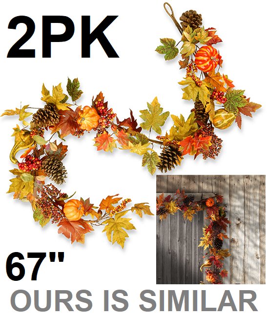 2PK Artificial Autumn Garland Made with Pumpkins, Pinecones, Berry Clusters and Maple Leaves - 67" - green/orange