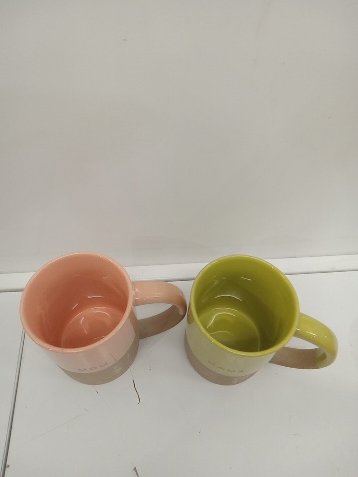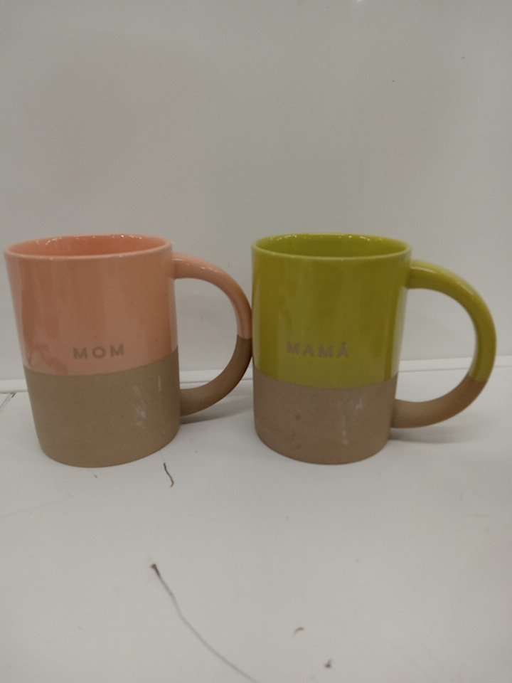 2pc Room Essentials Stoneware Mom/mama Dipped Clay Mug - 14oz - pink/green