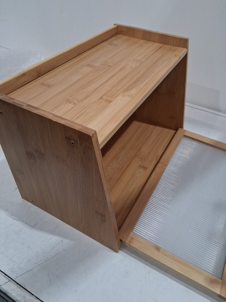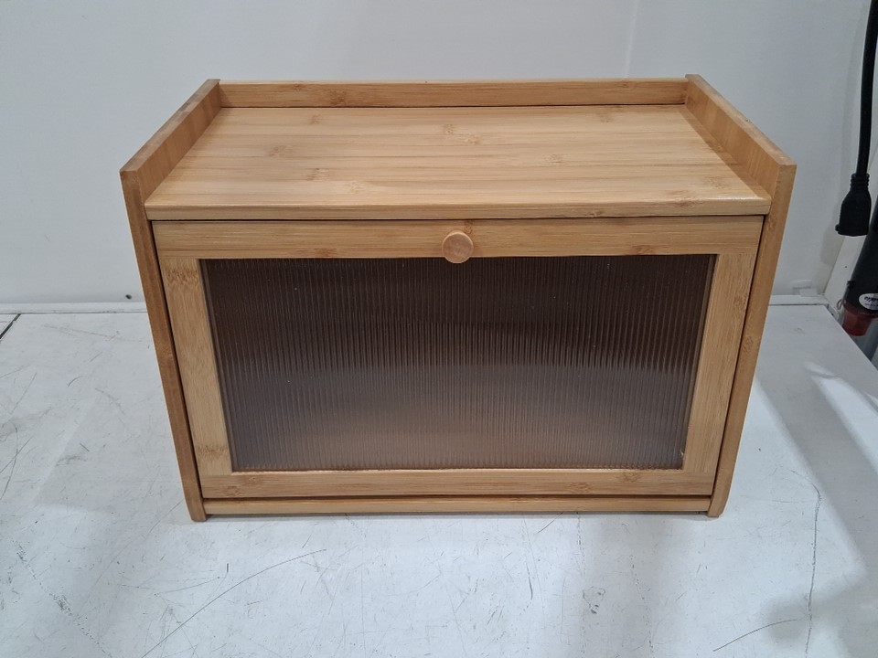 Kiplant contemporary bamboo bread storage box with wavy acrylic door - 10'' x 16'' x 10'' x 7'' - Brown