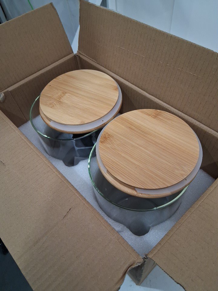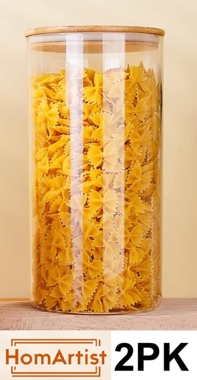 2PK Large Airtight Bamboo Lid Glass Jars - 180oz - (Model: ‎1Gal Set-2Pack)