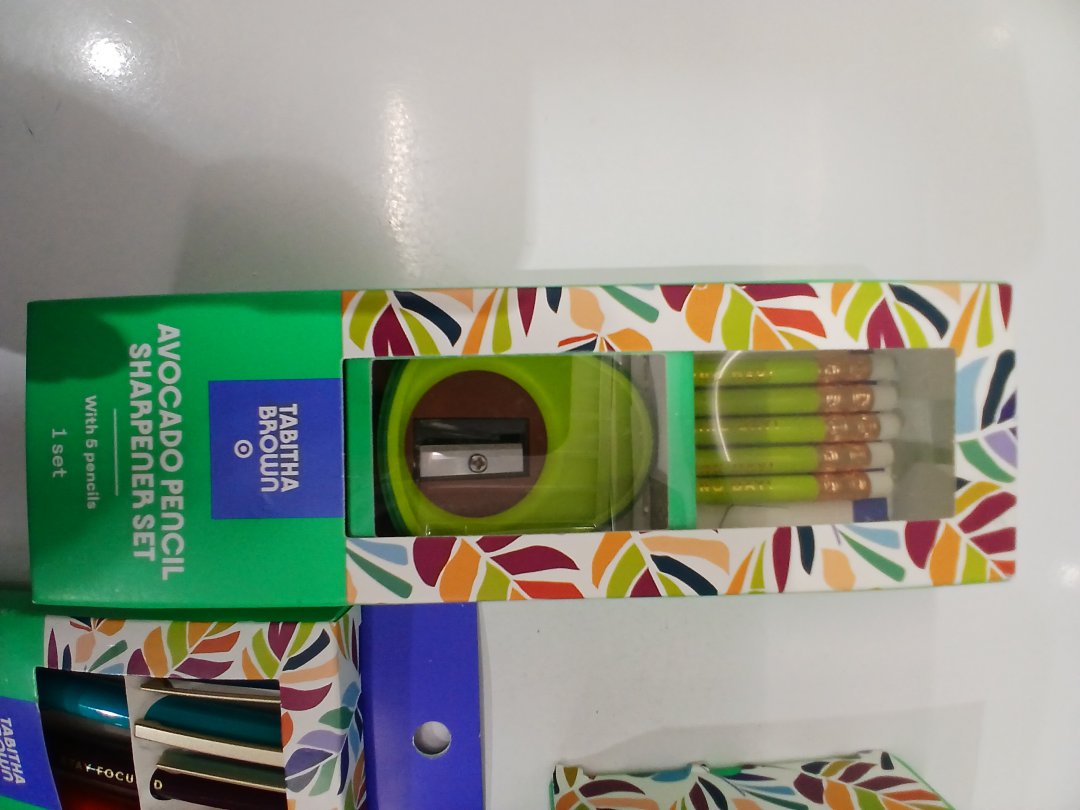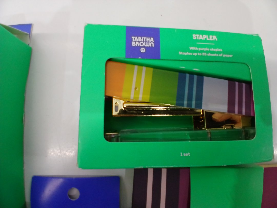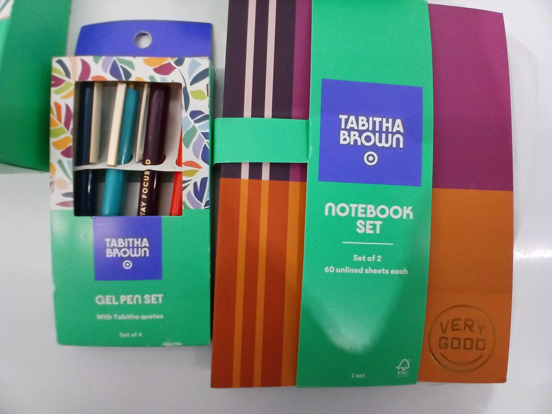 4 ASSORTED TABITA BROWN PRODUCTS - NOTEBOOK SET/ gel pen set/ stapler/ pencil and sharpener set