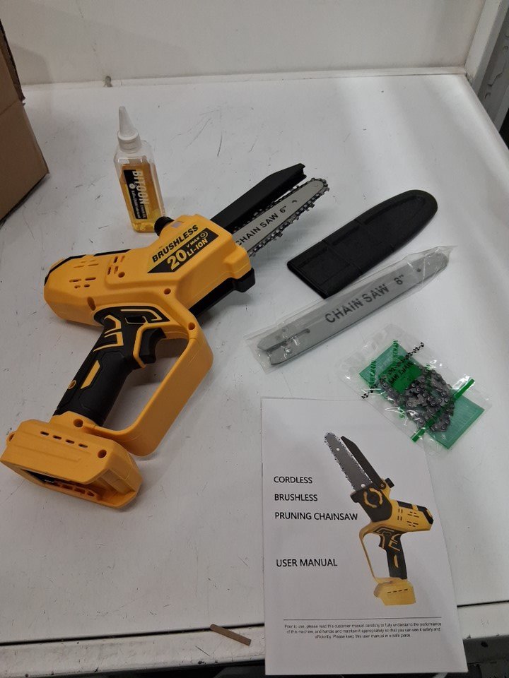 BITOON 2-in-1 Brushless Cordless Mini Pruning Chainsaw *tool only* - 6" / 8" Blades - WORKS WITH DEWALT 20V MAX BATTERIES - 20V - Yellow/Black