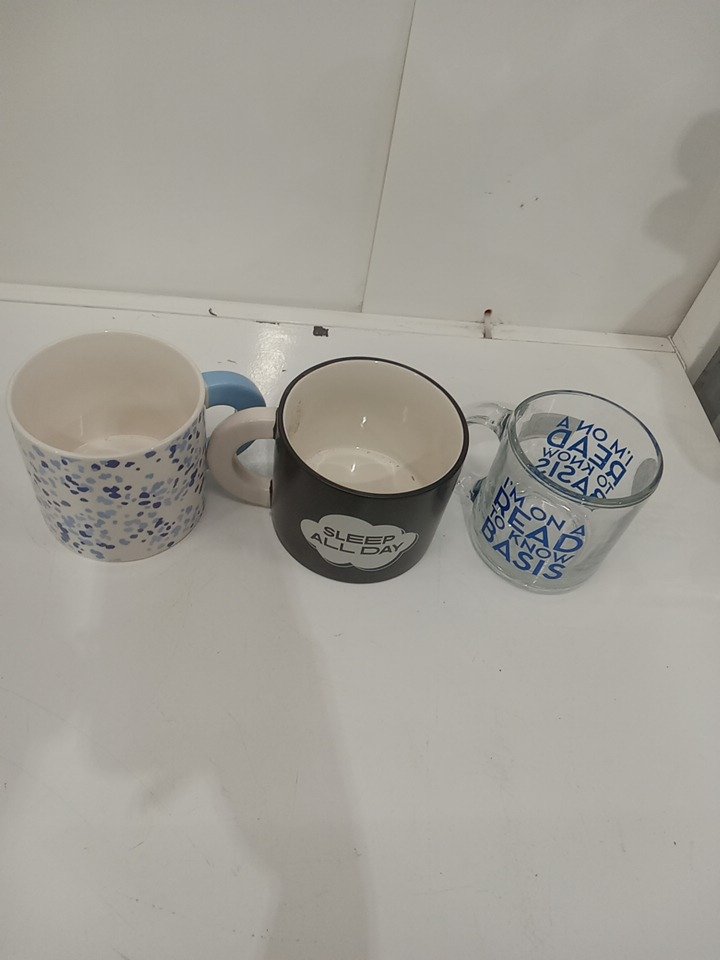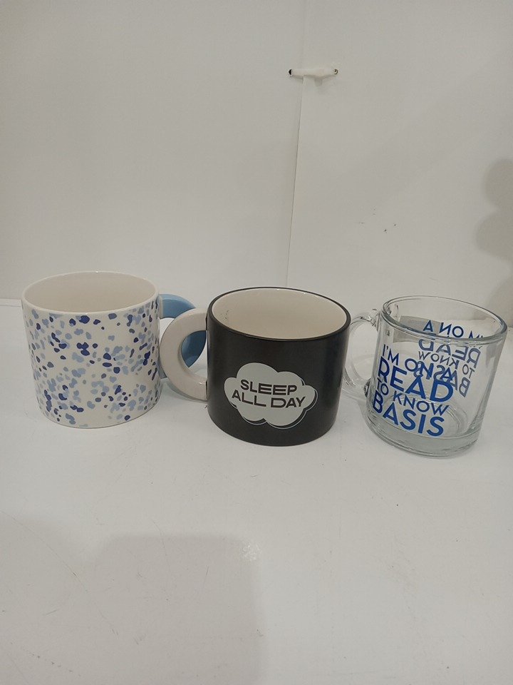 3pc room essentials coffee mugs - 14oz - blue/black/clear