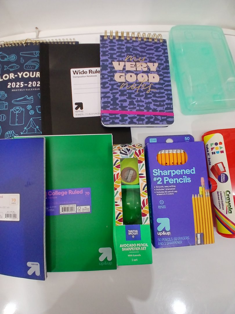 11 ASSORTED back to school / office supplies - NOTEBOOKS/ PENS/ PENCIL CASES