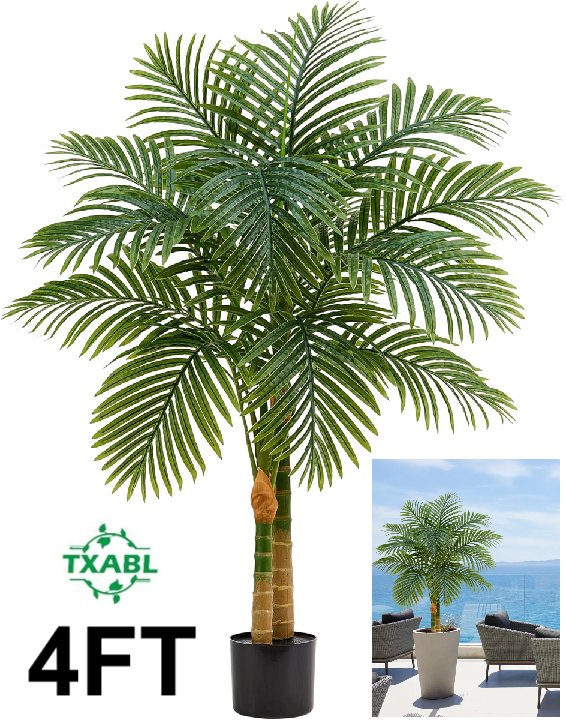 TXABL Artificial Golden Cane Palm Tree with Three Realistic Trunks - 4ft - black/green