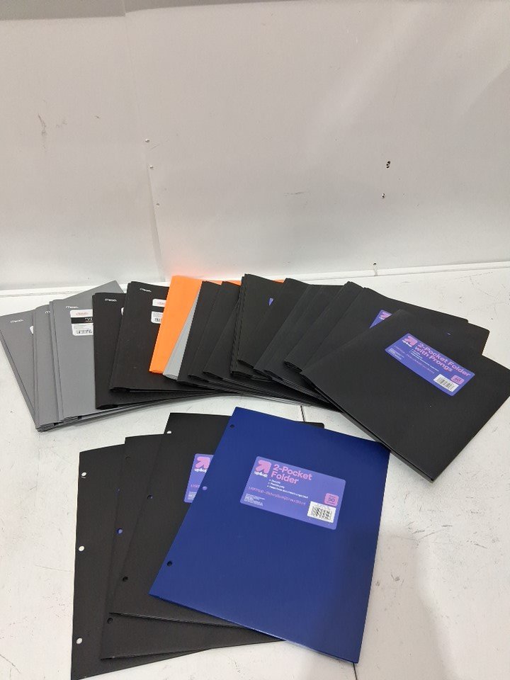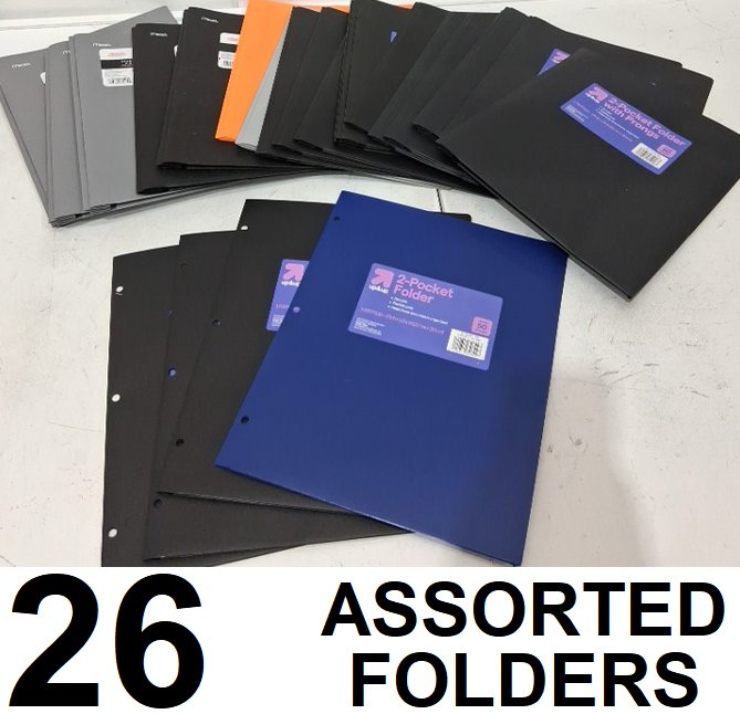 26 ASSORTED plastic and paper folder duotangs - assorted colours, styles and brands
