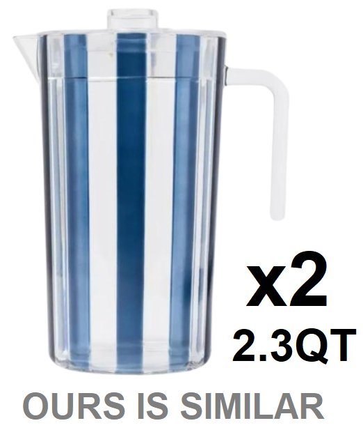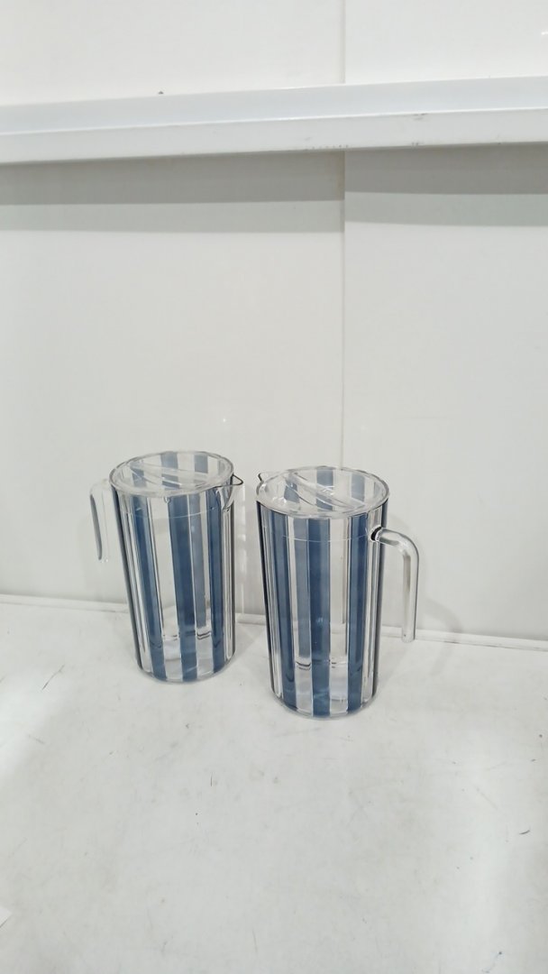 2 SUN SQUAD ACRYLIC BEVERAGE PITCHERS WITH LIDS - 2.3QT EACH - TRANSLUCENT/BLUE
