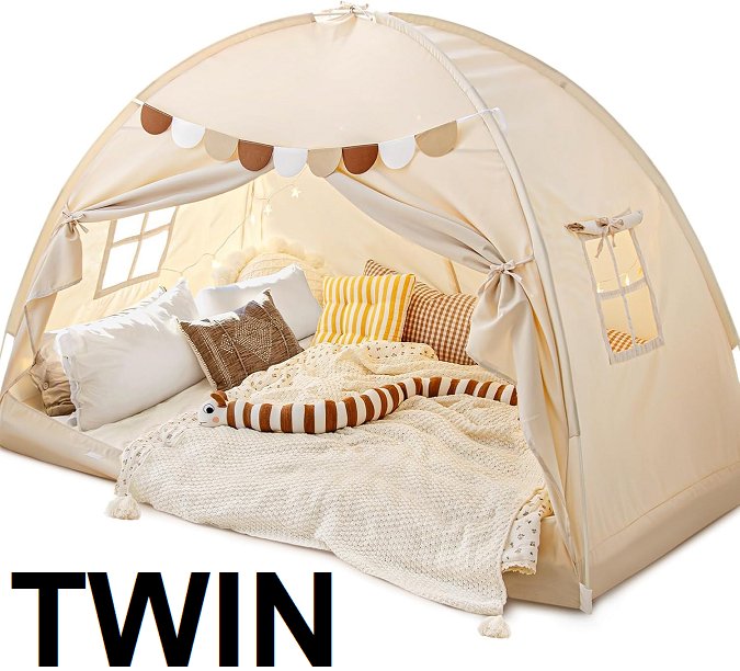 Sherilyn indoor Canopy Bed Tent Privacy Space Blackout Sleeping Tents- TWIN - BEIGE
