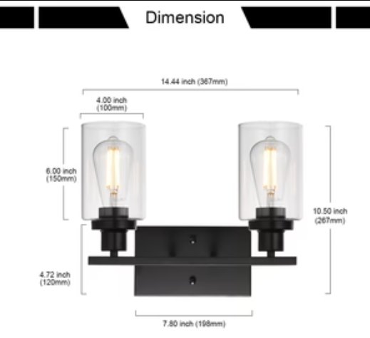 BONLICHT 2-LIGHT modern Vanity Hallway Wall Sconce with Clear Glass Shade - black