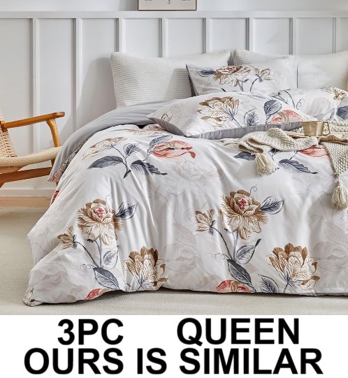 3PC VIVILAND FLORAL DUVET COVER SET WITH PILLOWCASES - QUEEN - FLORAL