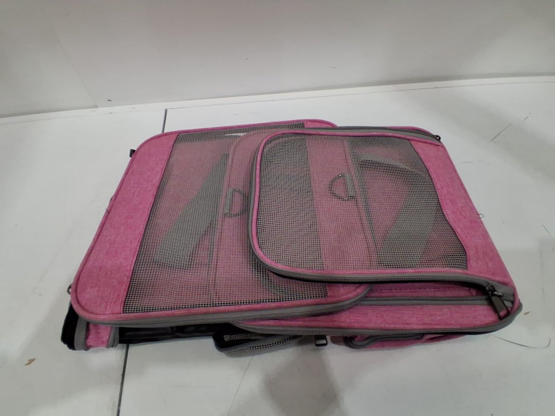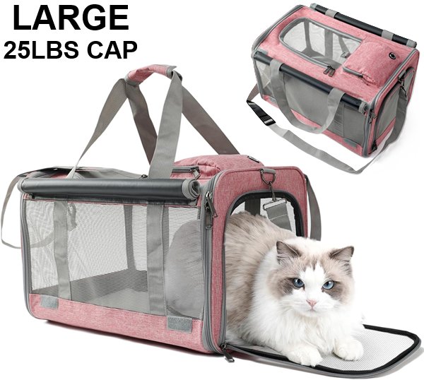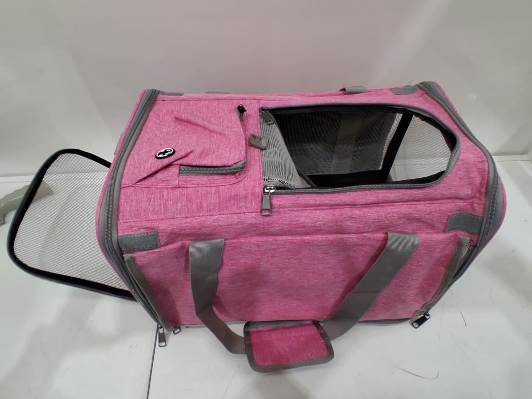 H.S.C PET PRODUCE PET Carrier Soft-Sided WITH 5 Ventilated Mesh Windows - 25LBS CAP - PINK/GREY