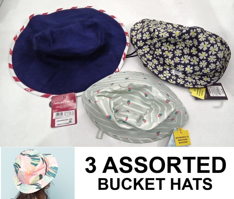 3 ASSORTED BUCKET HATS - assorted sizes & designs