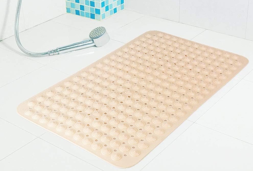 Non-Slip Bath Mat WITH Suction Cup FOR GRIP - 35" X 16" - BEIGE