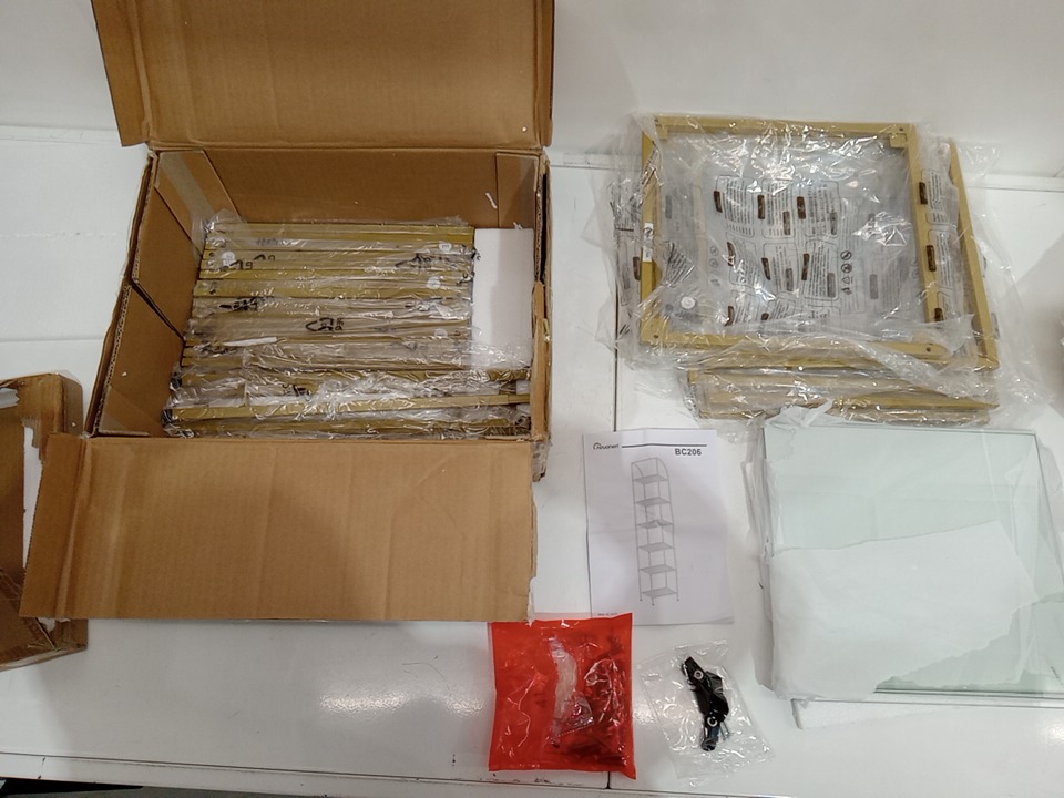 Hzuaneri 6-TIER Tempered Glass Arched Bookshelf - 11.8" X 13.8" X 70.3" - GOLD (MODEL: BC20699G)