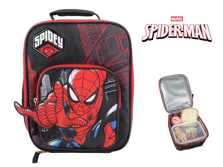 KID'S MARVEL SPIDERMAN LUNCH BAG BOX WITH WATER BOTTLE POCKET - RED/BLACK