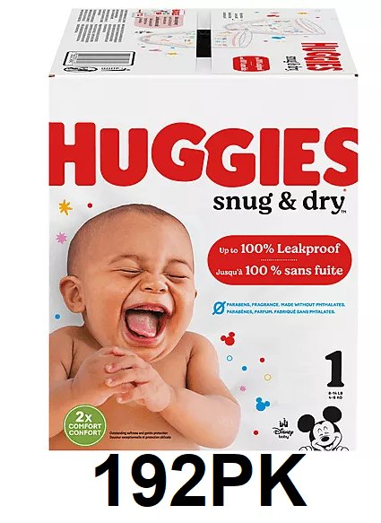 192PK HUGGIES snug and dry DISPOSABLE DIAPERS - SIZE 1 - DISNEY mickey mouse