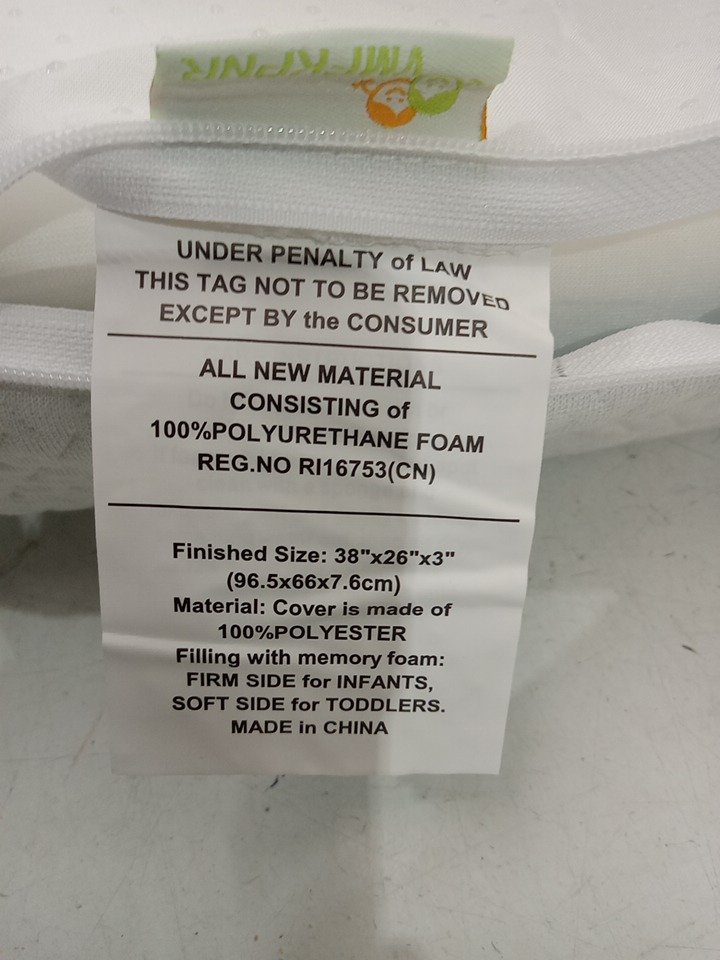 VMFKPNR memory foam Pack and Play crib mattress with removeable and washable outer cover - 38" x 26" x 3"