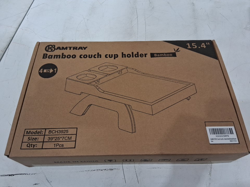 BAMBOOTRAY BAMBOO COUCH 4-IN-1 CUP HOLDER - 15.3" x 9.84" x 2.75" - GRAY (MODEL: BCH3925)