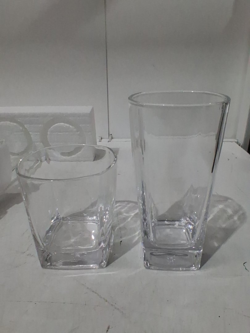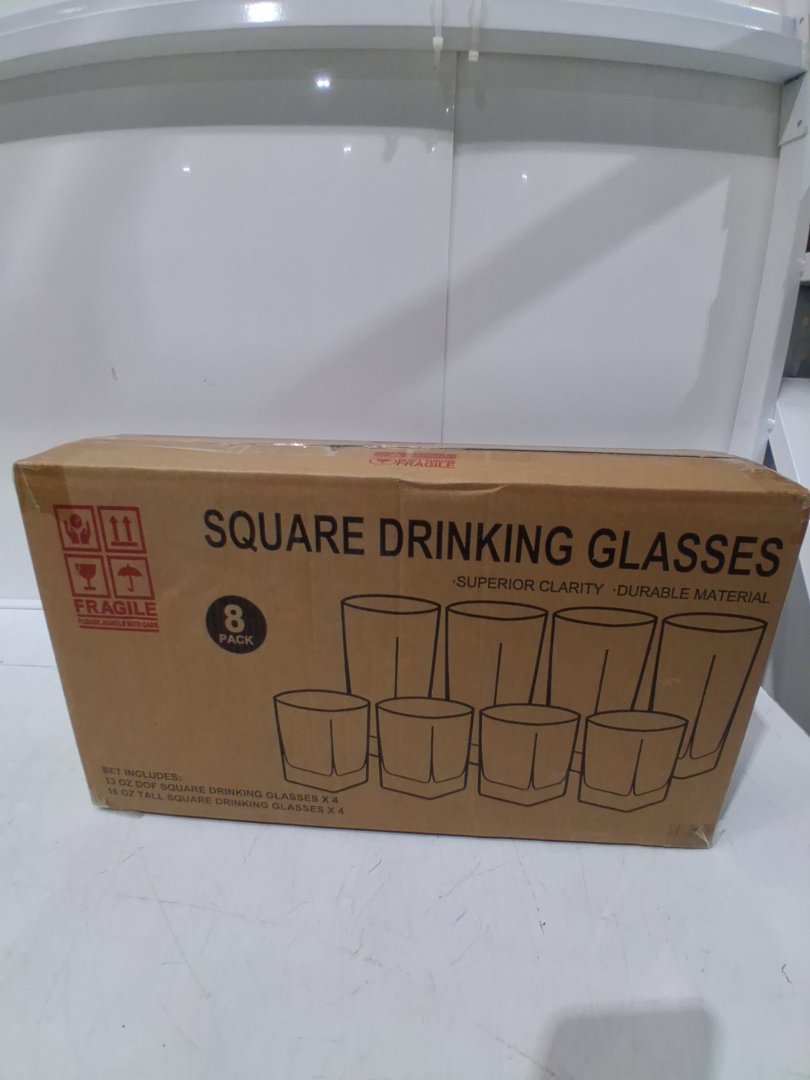 8pc le'raze heavy square base durable drinking glasses - (4) 13oz / (4) 16oz - glass (MODEL-GL-938)