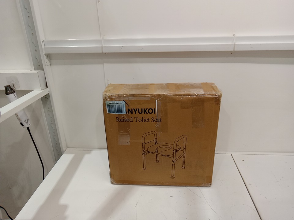 MANYUKOI ADJUSTABLE RAISED TOILET SEAT WITH HANDLES - 500LB MAX capacity - 27" to 33" X 15" to 21" - silver