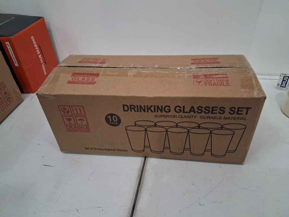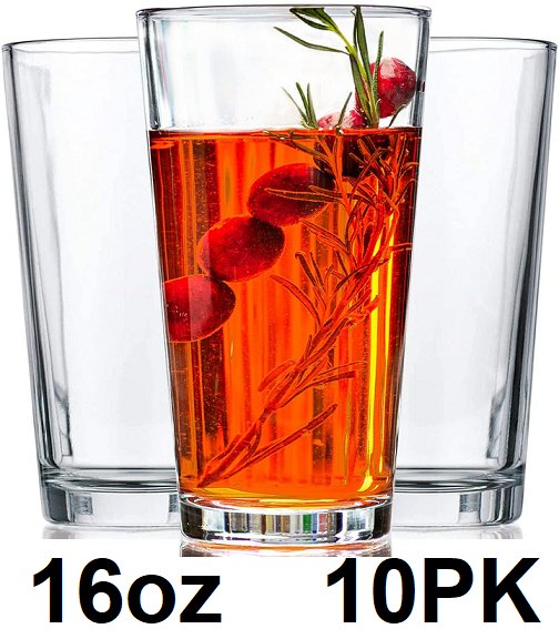 10PK LE'RAZE DRINKING GLASS CUPS - Water , juice , beer - 16oz - clear - (model:gl-272)
