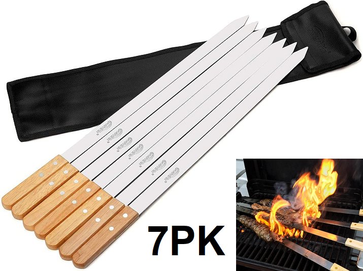7pk goutime Stainless Steel Grilling BBQ Skewers with Wood Handle - 23" - wood finish