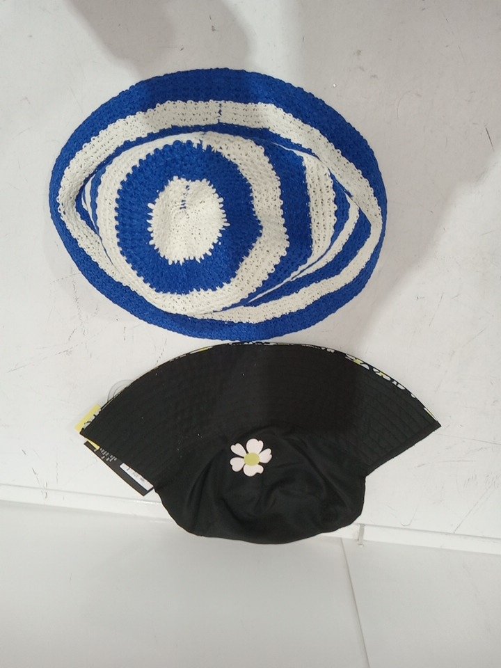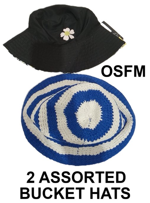 2 ASSORTED BUCKET HATS - OSFM - BLACK/ BLUE