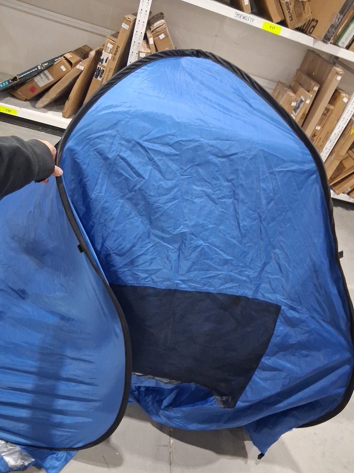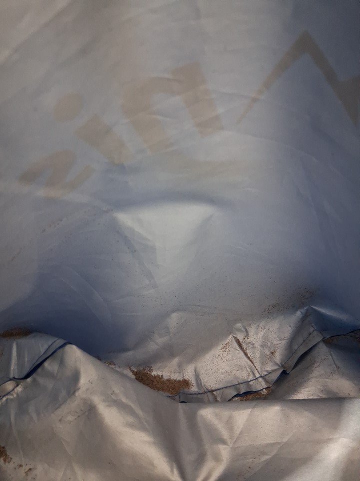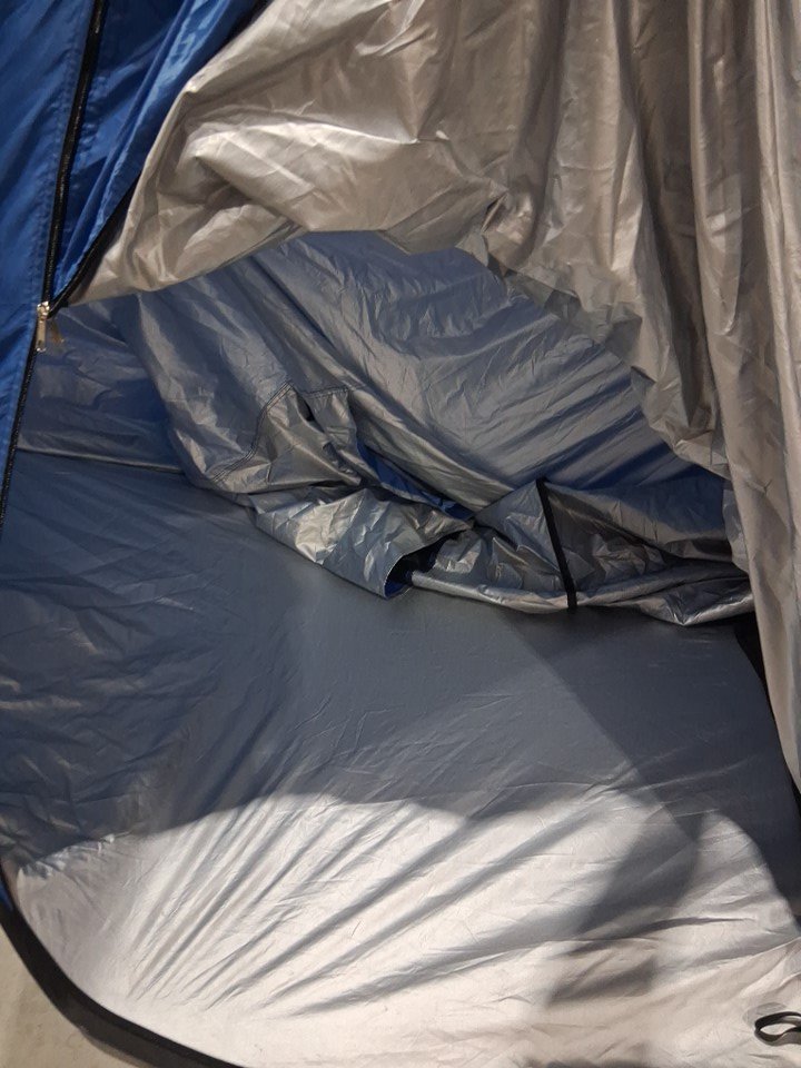 sand in bag and tent from previous use, slight bend when fully assembled see photos
