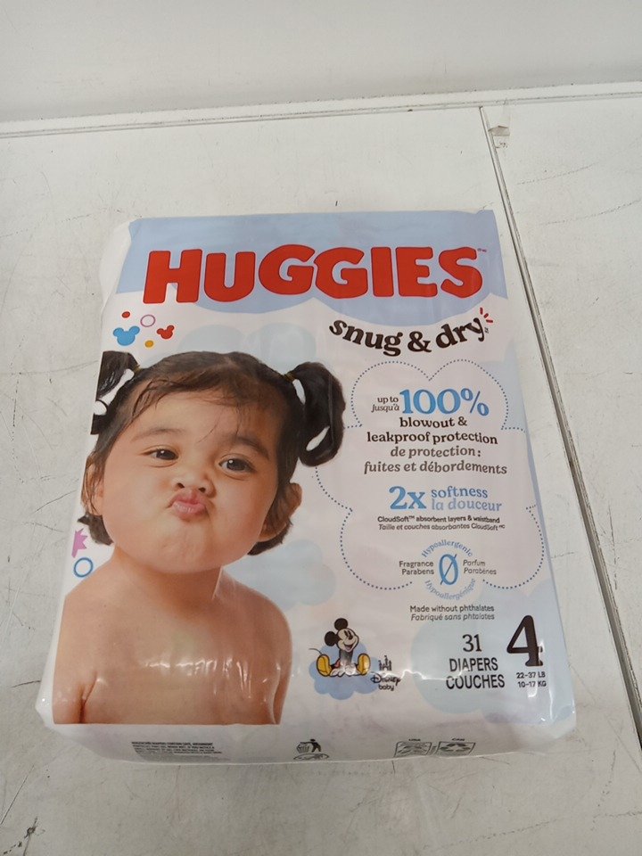 31pk huggies snug and dry diapers - size 4 - 22lb to 37lb - disney mickey mouse