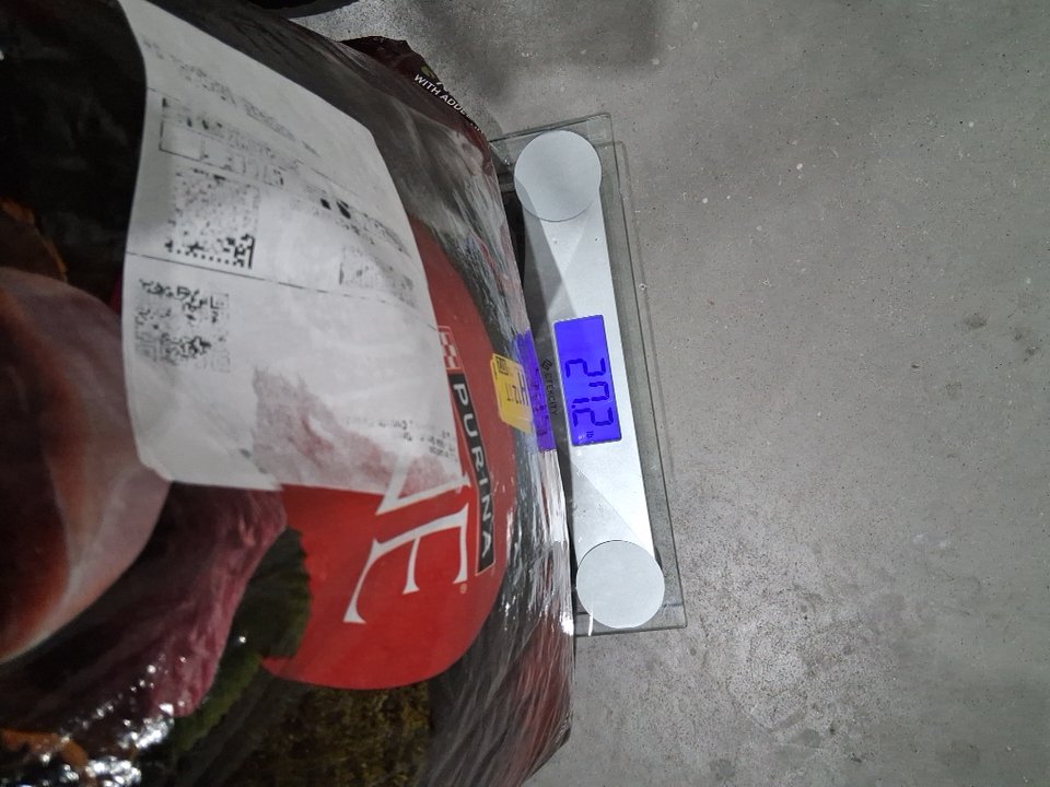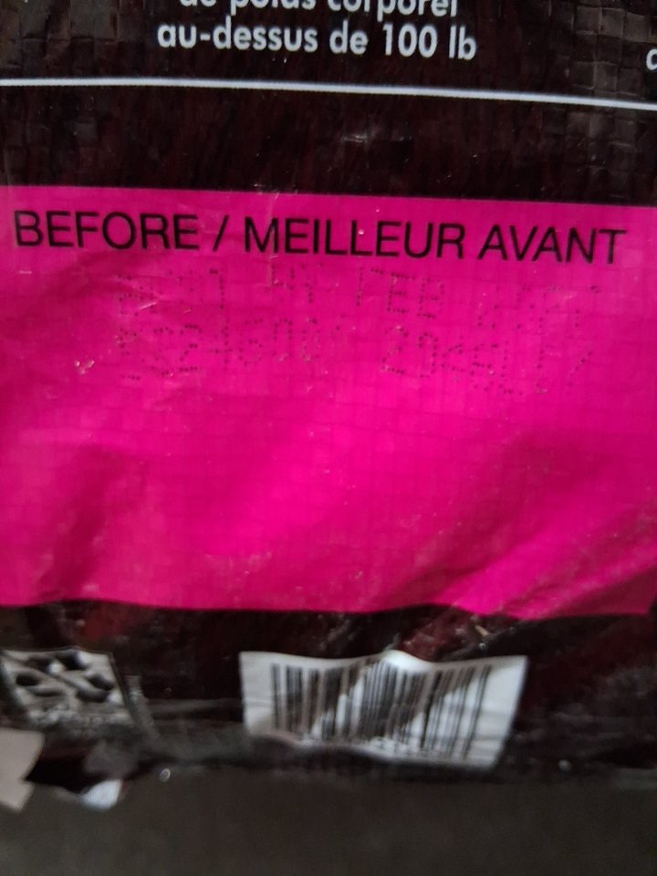 Please note: • The expiration date is not fully visible, only "Feb" could be clearly made out, see photos. • There was a hole in the bag where some dog food spilt out. It has been taped and after the bag weighed 27.2LB, see photos.