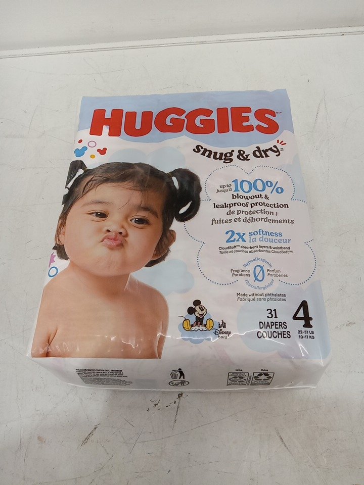 31pk huggies snug and dry diapers - size 4 - 22lb to 37lb - disney mickey mouse