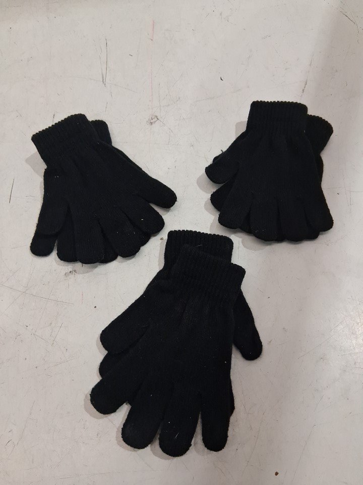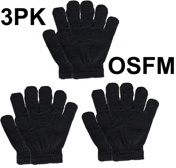 3PK Kid's Stretchy soft Winter gloves - osfm- black