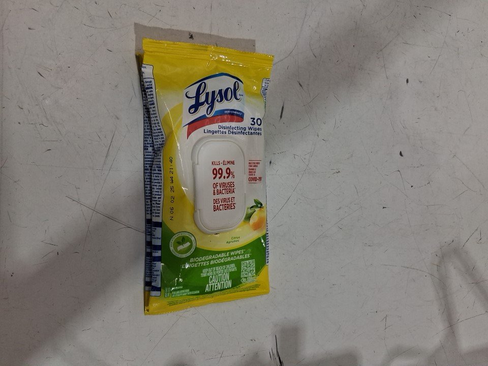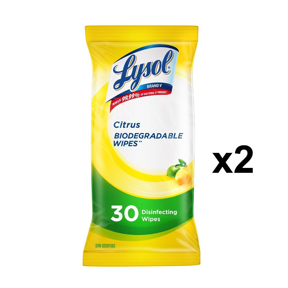 2 (30PK) Lysol biodegradable wipes citrus scented - total of 60 wipes