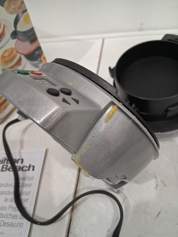 please note the item has small scratches as well as egg residue from previous use. tested for power. see photos.