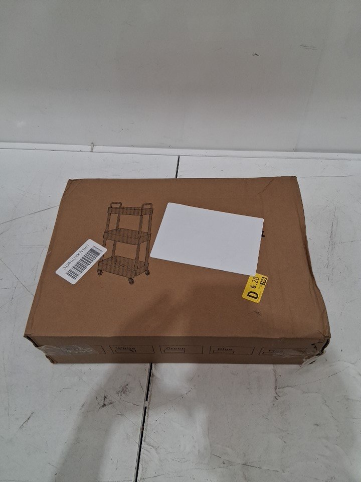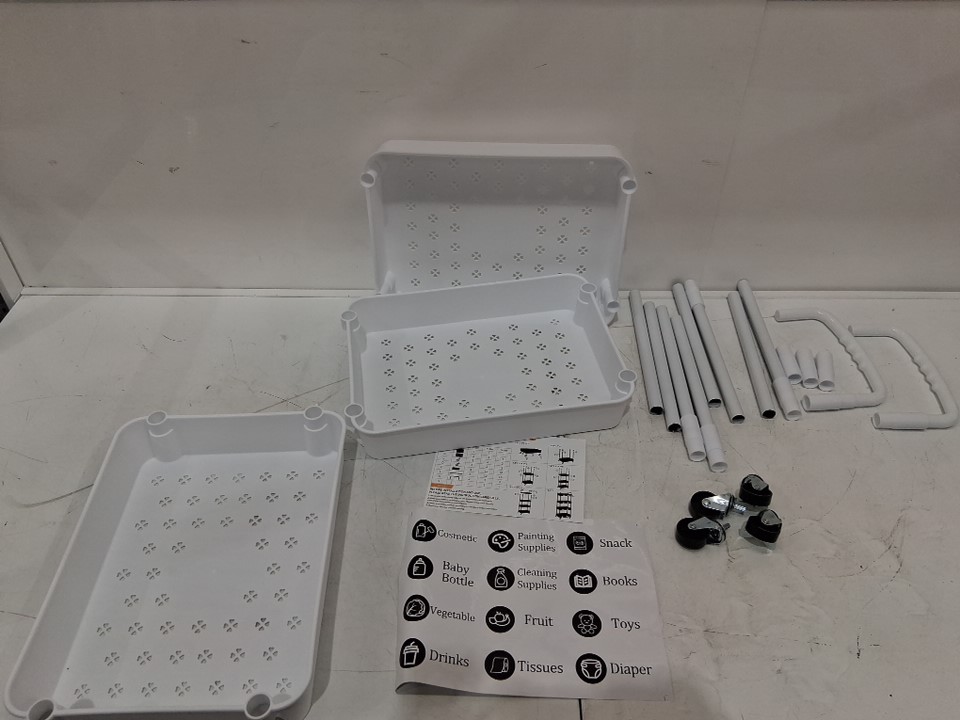 UDEAR 3-TIER PLASTIC KITCHEN ROLLING UTILITY CART WITH HANDLES AND LOCKABLE WHEELS - WHITE
