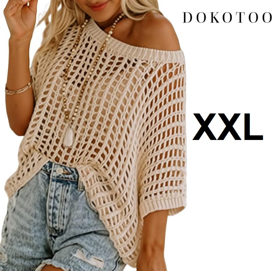 women's dokotoo hollow out knitted beach cover up shirt - xxl - beige