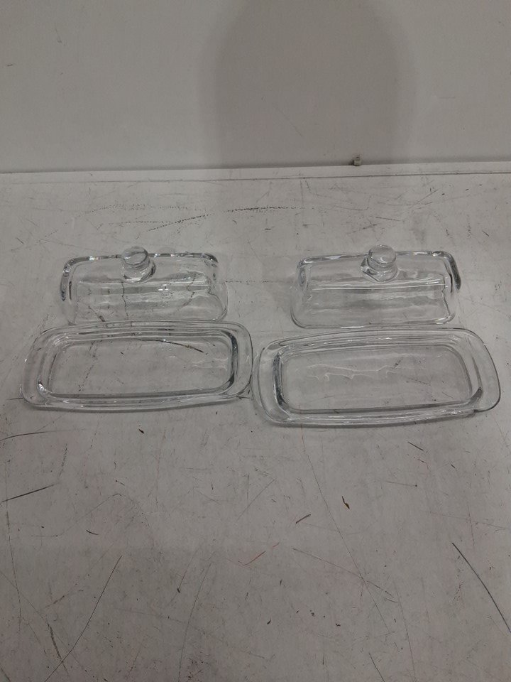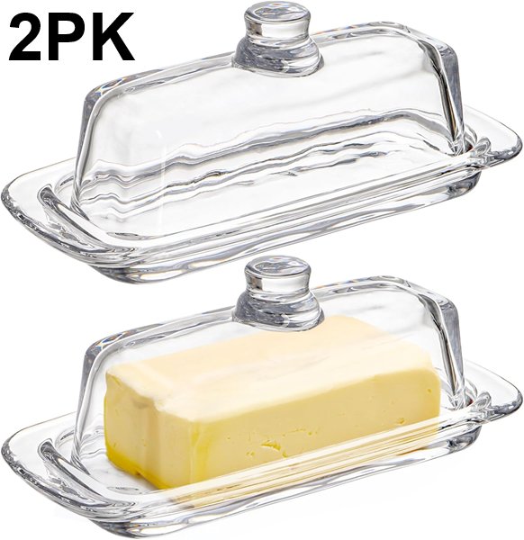 2PK Hedume Dishwasher safe Glass butter Dish with Handled Lid - Clear