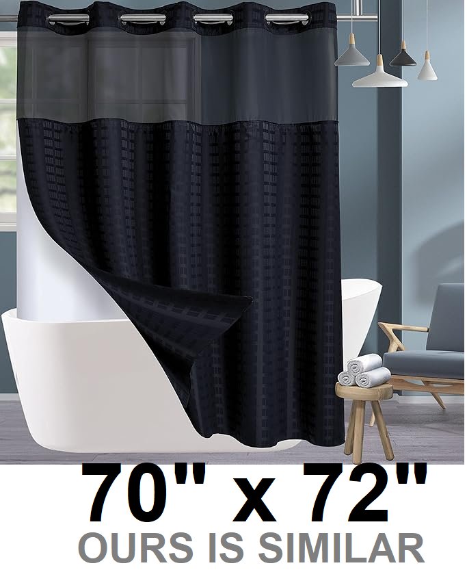 Hotel Style Fabric Shower Curtain with Snap in Liner - 70" x 72" - black / mesh