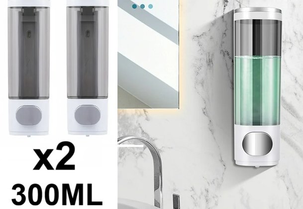 2 Wall Mounted Soap Dispenser - 300Ml - WHITE