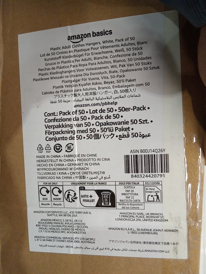50PK AmazonBasics Plastic Clothes Hangers - adult size - White