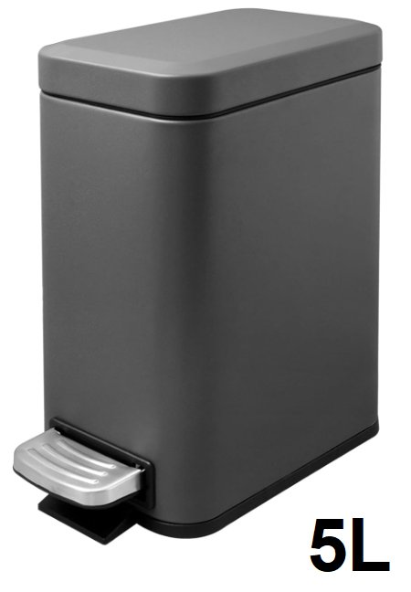 Slim Small Trash Can with Lid Soft Close - 5l capacity - grey