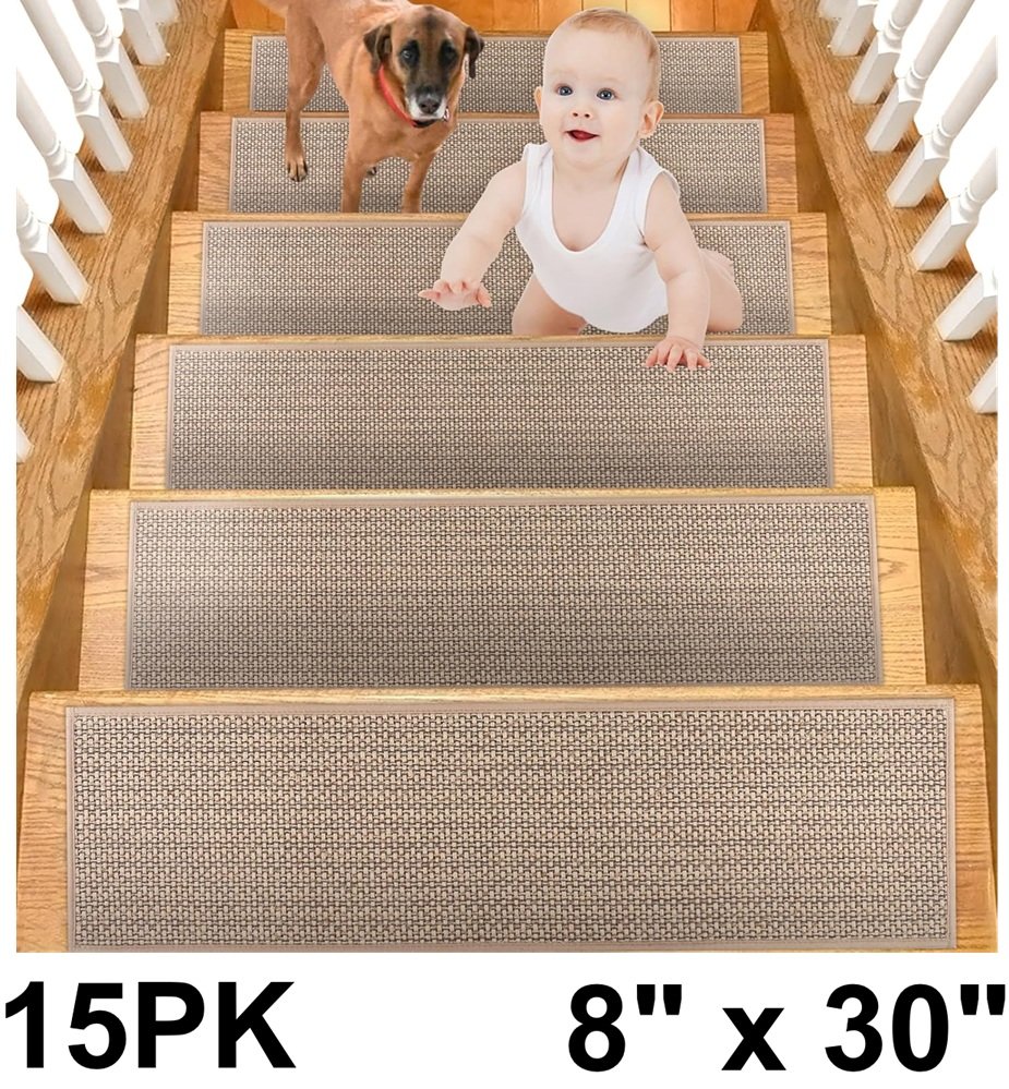 15Pk Non Slip Indoor Self Adhesive Stairway Stair Treads - 8" x 30" - light brown (model: ‎15#69230713)